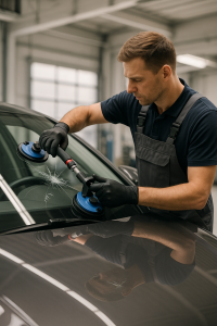Auch der Austausch von Fahrzeugscheiben gehört zu unserem Service. Wenn Ihre Windschutzscheibe irreparabel beschädigt ist, sorgen wir für einen fachgerechten und sicheren Wechsel – selbstverständlich mit Qualitätsglas und perfekter Passform.